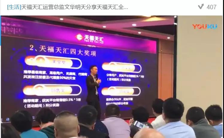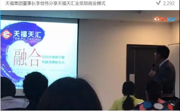 优酷上还有一段视频,是天福天汇运营总监在分享天福天汇的商业模式,就是对网传制度的详解。