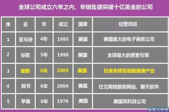 对于近几年的全球直销行业来说,业绩和市场发展异常迅猛的美商婕斯声名显赫。从2009年公司成立,到2015年营销额已超过10亿美元。有数据显示,在全球著名大企业中,能够在六年时间内销售额突破十亿美元的的企业屈指可数,只有苹果、脸书、亚马逊、谷歌以及婕斯能做到这一成绩。