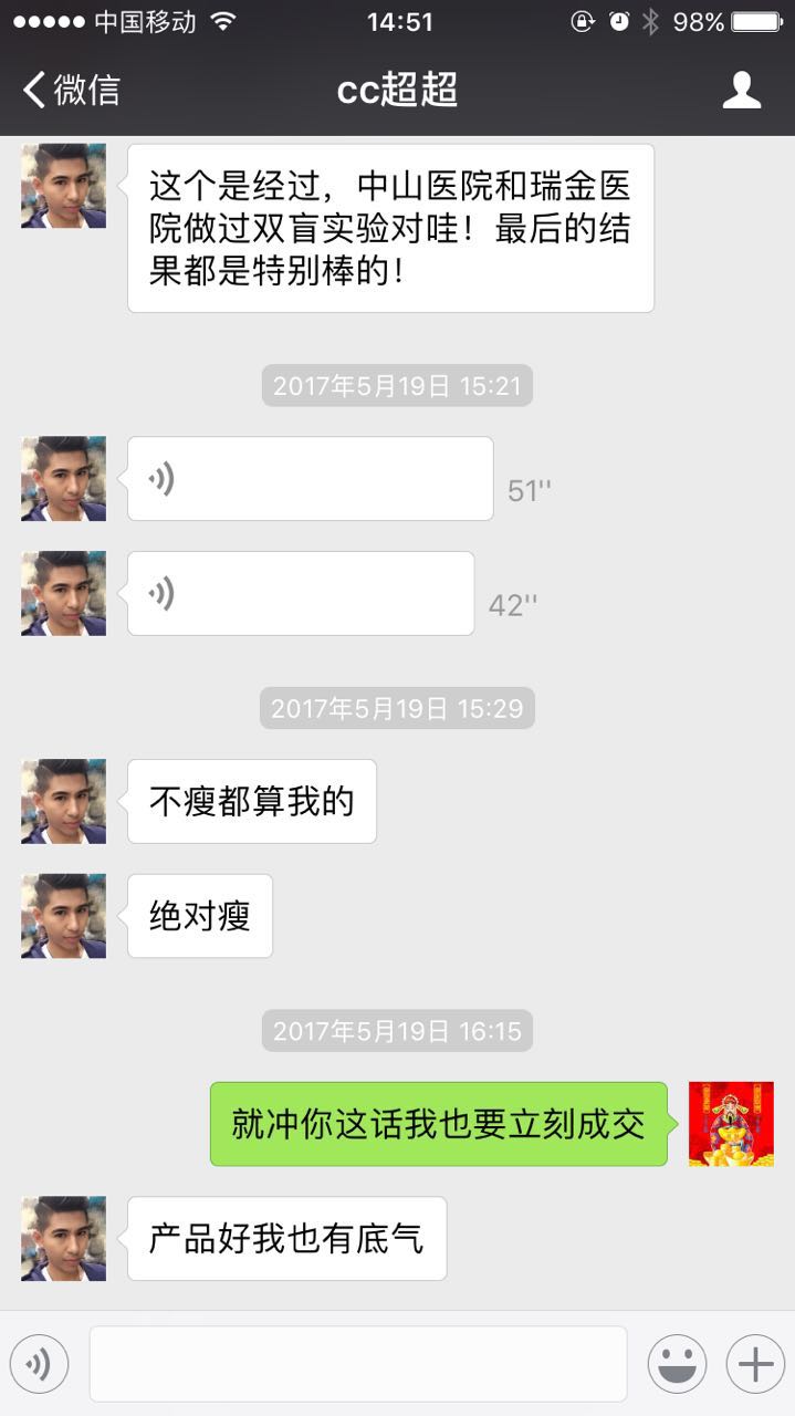 我只能又跟当地的打浦桥工商所反应过,打浦桥工商所也调解过但陈超依然拒绝退款,工商所表示自己由于我们之间没有书面合同(微信聊天记录没有法律效力),也没有确凿证据证明我没瘦(陈超卖给我产品的时候也没带我去称体重和我吃过后对比),因此他们也只能调解无法强制,因此调解失败。之后我又以他当时没给我开发票为由反映到税务局,也同样没有很好受理。之后我又跟陈超和安利公司沟通过很久(到现在差不多半年多了)仍然没有结果,我很生气和无奈,只能反应到媒体,希望媒体曝光安利公司有个不诚信的业务员,安利公司也不处理这样的业务员。一个为了销售额虚假宣传的公司,如何让人相信它的产品是靠谱的。希望大家以后买东西擦亮眼睛,不要买安利的产品,价格很高,质量和效果都是画大饼的。