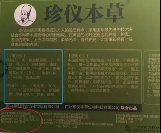 也就是珍仪本草根本没有取得生产许可,借着楚颜染发膏的批号,违法生产销售产品。