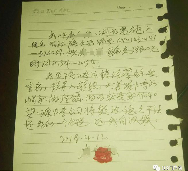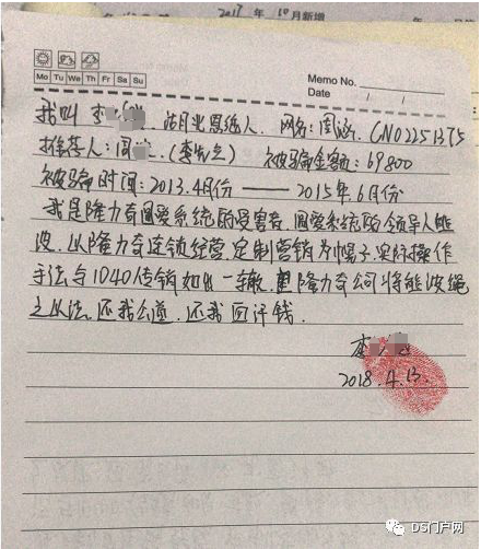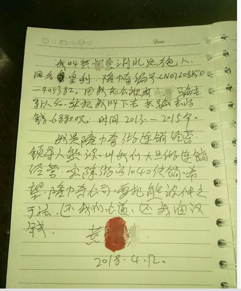 据笔者了解,之前也曾有传销分子混入隆力奇系统内部,后被隆力奇公司肃清。通过受害者了解到,就在2017年底隆力奇公司曾约谈熊波,要求他解散此组织,而熊波表面答应,却私下通知成员放假回家,年后那批人又陆陆续续返回苏州,继续从事。