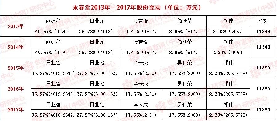 对于股东的变更,颜廷和在电话中坦率地表示,“股权的变更主要是公司发展的需要,当然还有一些其他的因素,但这些因素不方便告诉外人。山东永春堂有几个分公司,我交给了和企业一起成长起来的伙伴,让他们来运作。”