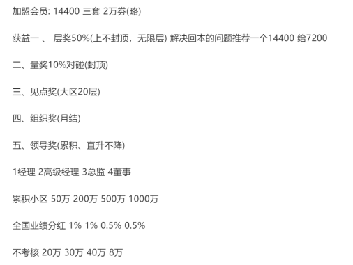 据一位琪尔康经销商刘先生透露,该公司的奖金制度一直都在调整,隔三差五的改动奖金制度,并且,都将之前的业绩全部归零。刘先生称,自从2014年加盟琪尔康事业以来,该公司已经多次修改了奖金制度。