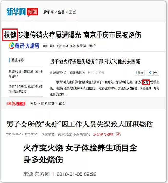 权健火疗导致烧伤新闻 图片来源:网络截图