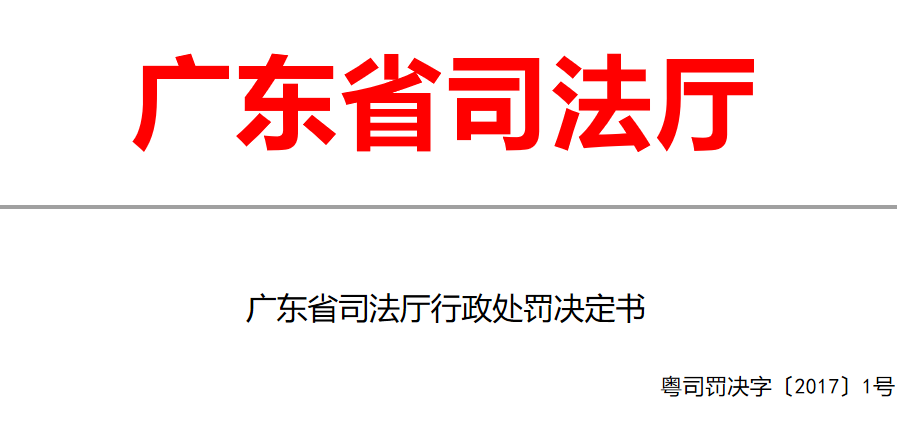 2017年2月15日,广东省司法厅向华曦所发出《广东省司法厅行政处罚告知书》(粤司罚告字〔2017〕1号),给予广东华曦法医物证司法鉴定所行政处罚,并责令改正。