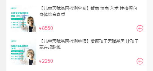 核子基因在对外推广的众多基因检测项目中,也涉足了儿童天赋基因检测,在其官方网上商城中的售价为单项2250元,全套8550元。
