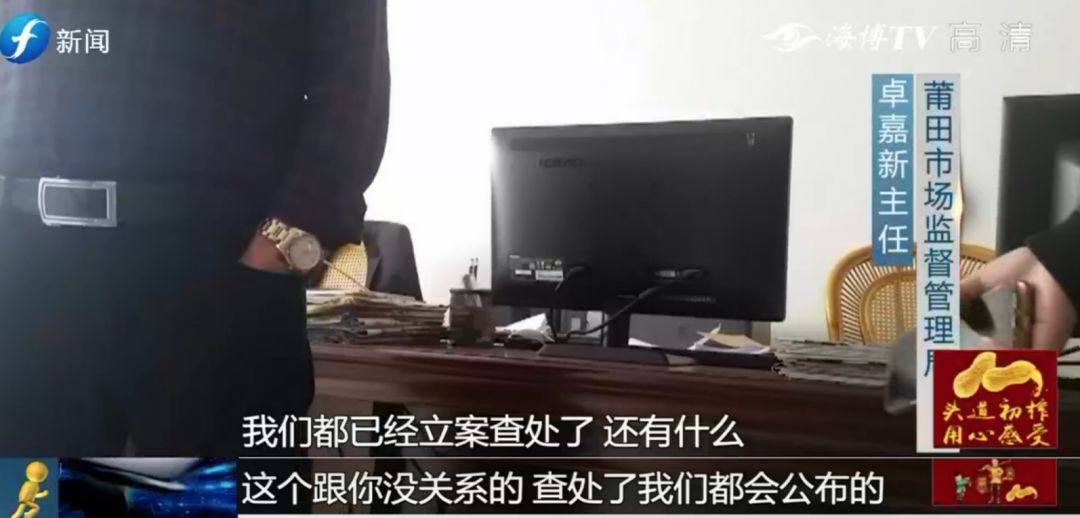 2018年12月13号,我到(莆田市)市场监督管理局,现场举报,证据全部拿给他们录音录像,它(莆田市场监督管理局)告诉我会受理,又说还要调查一下,一直不处理,到了现在已经是3月底,好几个部门都不接我电话,只要一看到我电话号码就不接了。