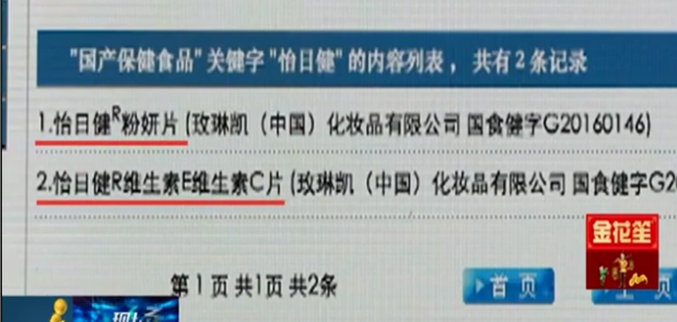 记者打开了国家食药监局的官网,在国产保健食品信息查询中,只搜到了两种玫琳凯的产品。