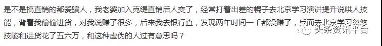 类似这样的案例也不在少处。有很多受害者反应,克缇直销就是变相的传销,他们先用模糊的奖金制度拉人入会,入会时少则上万的返本奖跟服务奖12层子虚乌有,入会后天天做培训,培训一次少则几百多则上千,完全要靠发展下线才能赚回一部分钱。