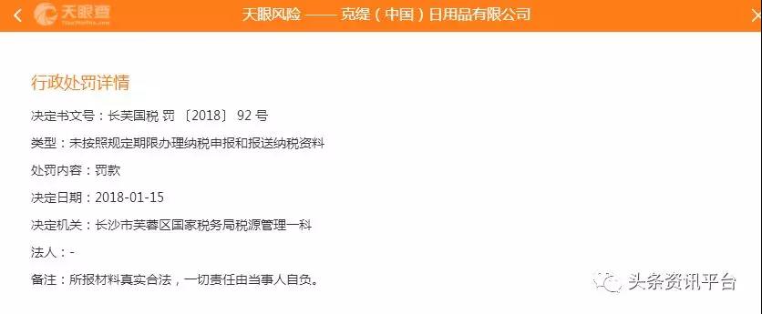 2018年1月15日,克缇湖南分公司未按照规定期限办理纳税申报和报送纳税资料,被长沙市芙蓉区国家税务局税源管理一科处罚。