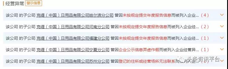 另外,克缇哈尔滨分公司、福建分公司、河南分公司、宁夏分公司、苏州分公司均因未按规定提交年度报告信息、未按规定提交年度报告、弄虚作假、企业登记场所无法联系而遭受行政处罚。