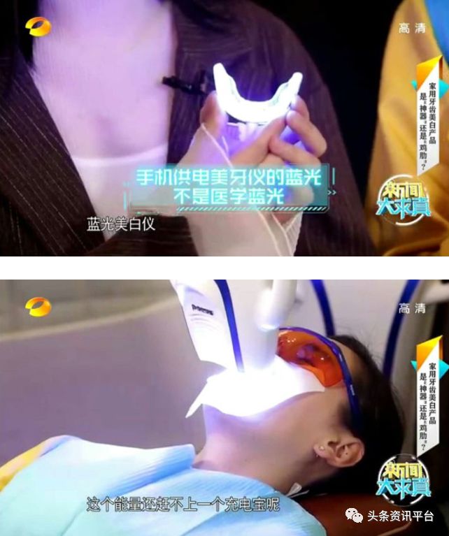 北京解放军第302医院口腔科主任医生李雅彬表示,LED蓝光可以产生两万五千个光束,通过冷光,经过滤镜片等专业设备,再通过美白凝胶涂抹在牙齿上,通过医学的480~520纳米蓝光进行处理以后,让光敏剂渗透到牙齿的釉质和牙齿本质中,分解牙釉质和牙本质中的色素,产生牙齿美白的作用。而碧缇福美牙仪的能量实际上连充电宝都不如。
