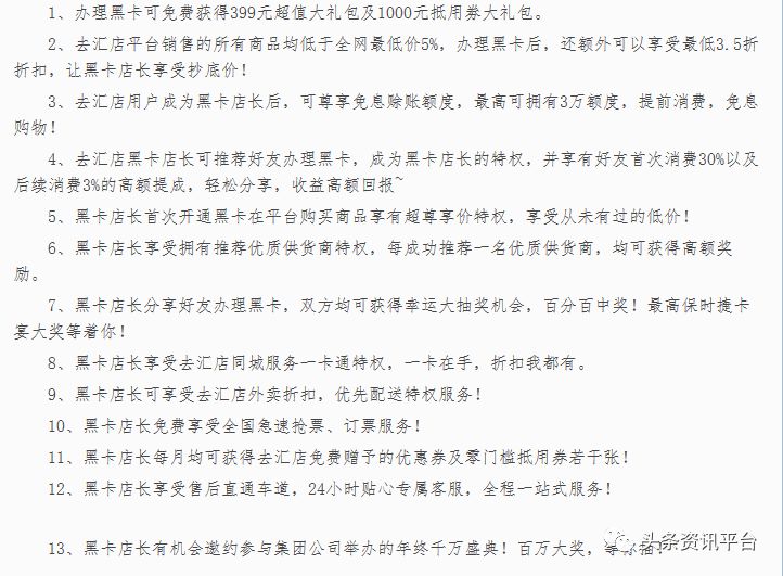 同时,也有另外一版本的宣传资料表明,注册去汇店办理黑卡的价钱是399元,拉人加盟办黑卡同样有提成拿。