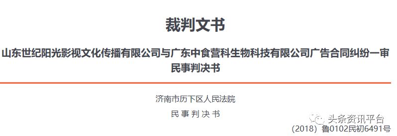 此外,因拖欠运费,颜如玉医药科技有限公司还被广州市金大物流服务有限公司告上过法庭,法院判处被告支付相关费用共计6万余元;无独有偶,由王中振担任企业法人的广东中食营科生物科技有限公司也曾因合同纠纷而被山东世纪阳光影视文化传播有限公司告上法庭,法院判处被告支付广告发布费54万余元。