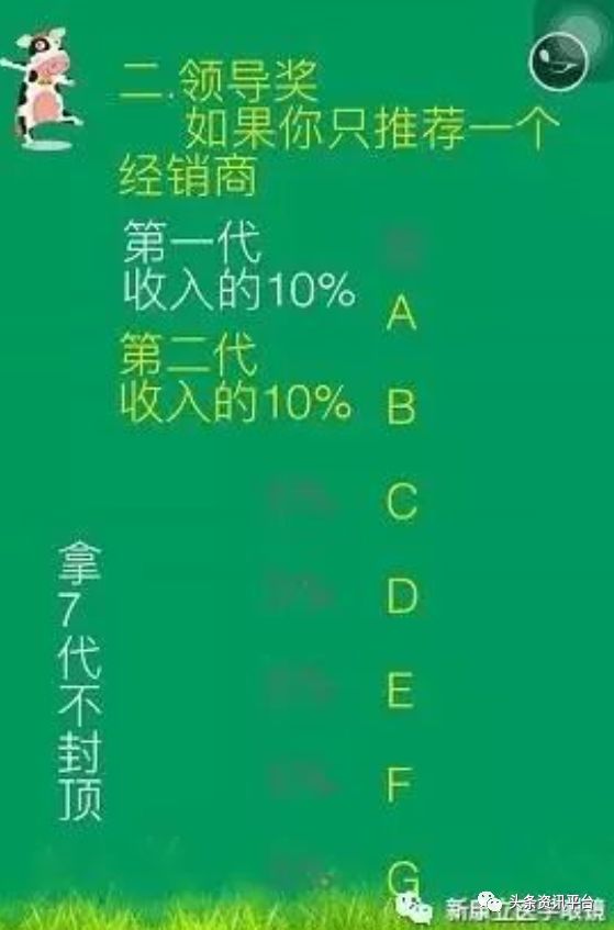 第三种奖金:领导奖:(拿下七代的百分比,根据单形不一样拿的代数不一样)