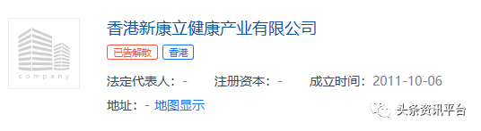 顺带一提,调查还发现,香港新康立健康产业有限公司在目前也“已告解散”。