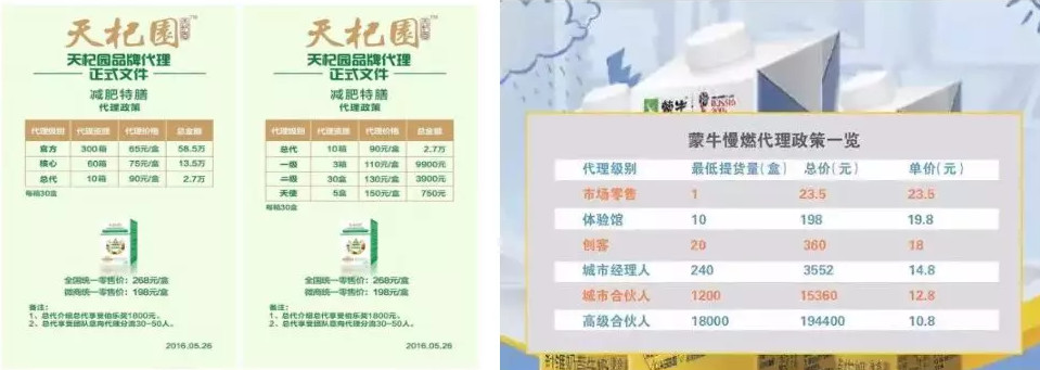 较高的利润空间为多层级代理提供了可能,蒙牛大品牌成为许多代理深信慢燃的理由,消费融合创业的微商模式令市场快速裂变,甚至一度超过产能供应。