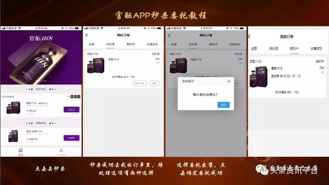 据了解,在这个平台上,实名消费理财1500元,可提货“官酝”酒1瓶,加700元获得秒杀区秒杀官酝酒提货券2张,可提货或提交委托销售,销售成功后可提现2400元,每单消费理财收益200元+1瓶官酝酒,每周收益为1400元和7瓶官酝酒,月收益为6000元和30瓶官酝酒。