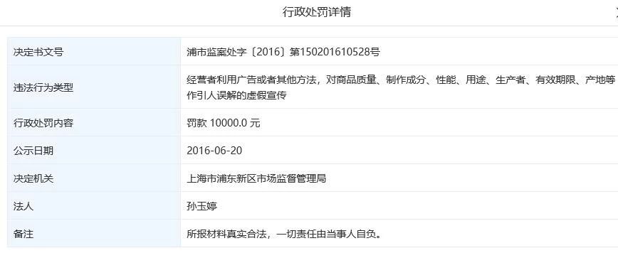 在市场经营的过程中,百中草本曾因为产品的宣传问题,被起诉和处罚过。从天眼查的公开资料可以看到,2016年,百中草本因为发布引人误解的虚假宣传,被上海市浦东新区市场监督管理局罚款1万元;2018年,百中草本又因为发布虚假广告被上海市闵行区市场监督管理局罚款10万元。