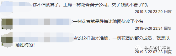 另有知情人透露,近期,胜梅团伙广西小团伙,据说是被转给了上海也诚生物科技有限公司,改名“一树花香”,在今年三月份,“一树花香”周建辉老总团队出现卷钱走人的现象,发不了工资,几百个受害者在那里闹。