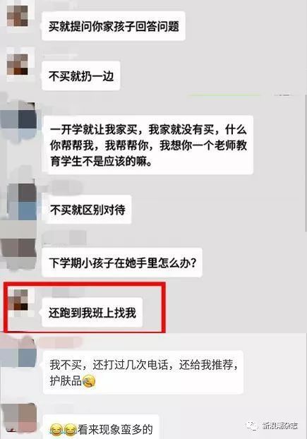 然而,整个事件最大的危害,或者说最值得警惕的地方,也恰恰在于老师和家长之间这种微妙的关系。换句话说,在这层关系中,老师是掌握着主动权,处于强势地位的,而家长则处于被动地位,所以才会“敢怒不敢言”。然而,不管最后家长们是一直默默忍受,还是像新闻中个别家长一样,最终在家校微信中直接质问老师,从老师以教师的是身份向学生和家长推销各种产品的那刻起,就已经违背了教师的职责,违反了国家的相关规定,同时也损害了整个教师群体的形象。