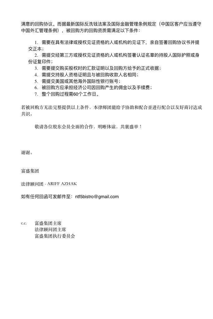 富盛-RIHC-鼎盛集团全体投资人坚决不予接受《312》不平等条约,强烈要求鼎盛集团履行《2016年回购协议》兑现承诺义务。