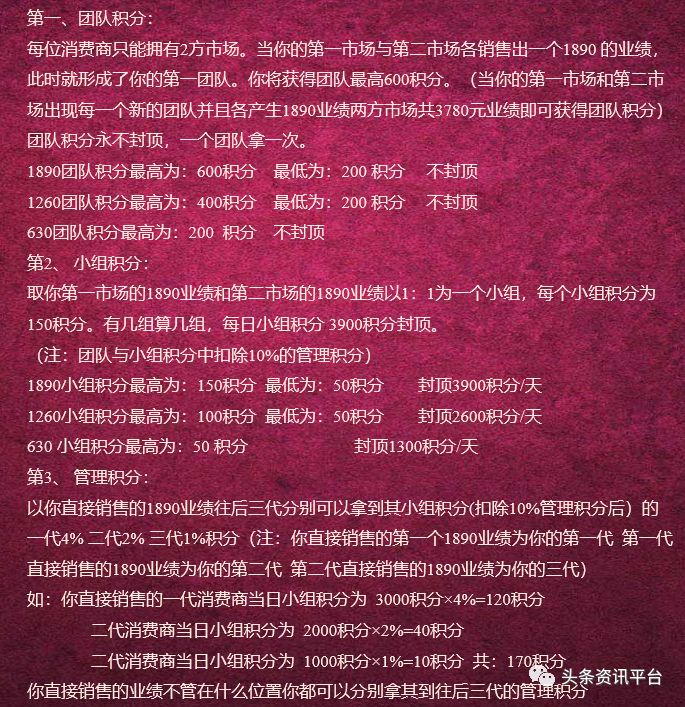 显而易见,三级分销是目前梦芝堂奖金制度中的主要板块,至于其他政策是不是还保留,对此,各店主的意见并不一致,比如店主小刘,她就表示公司目前只有三级分销,没有其他制度。但据店主小吴介绍,公司在制度方面还存在诸如“全球股东分红”、“推荐奖金”等模式,不过最近公司的奖金制度一直在改,所以其他收益板块的算法与具体政策无法向其他人准确提供。
