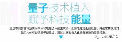 而从宣传图片中,我们也能看见“量子冰晶寝居六件套”的五大功效:改善微循环、增强免疫力、改善亚健康、促进新陈代谢、提升生命品质。