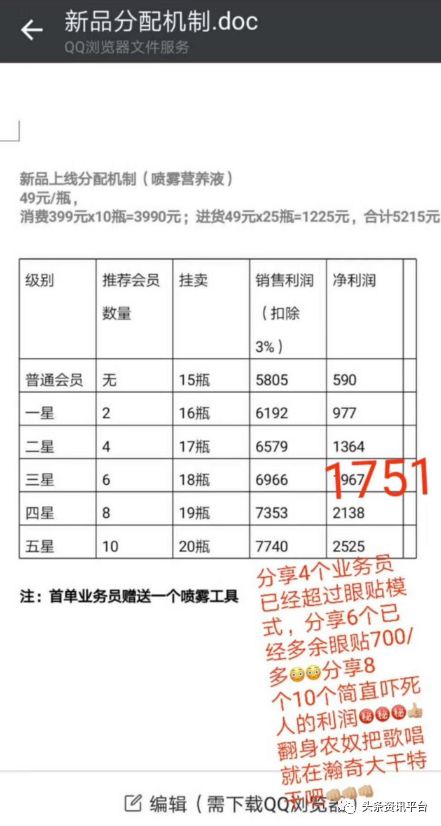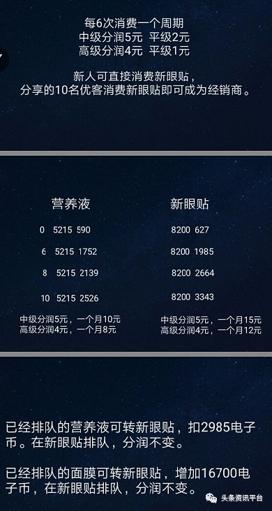 关于这个模式,经销商大刘在介绍时特别注重“字眼”,他称于2018年9月25日启动的瀚奇科技新消费模式是“传统生意,不是直销、不是资金盘;是注册,不是报单;是循环消费进货,不是复投排单;是消费,不是投资;是产品挂卖获得差价收益,不是返利。我们的四步是:消费、进货、挂卖、赚取差价的钱(获取收益的时间是按照市场新增业绩决定)。”