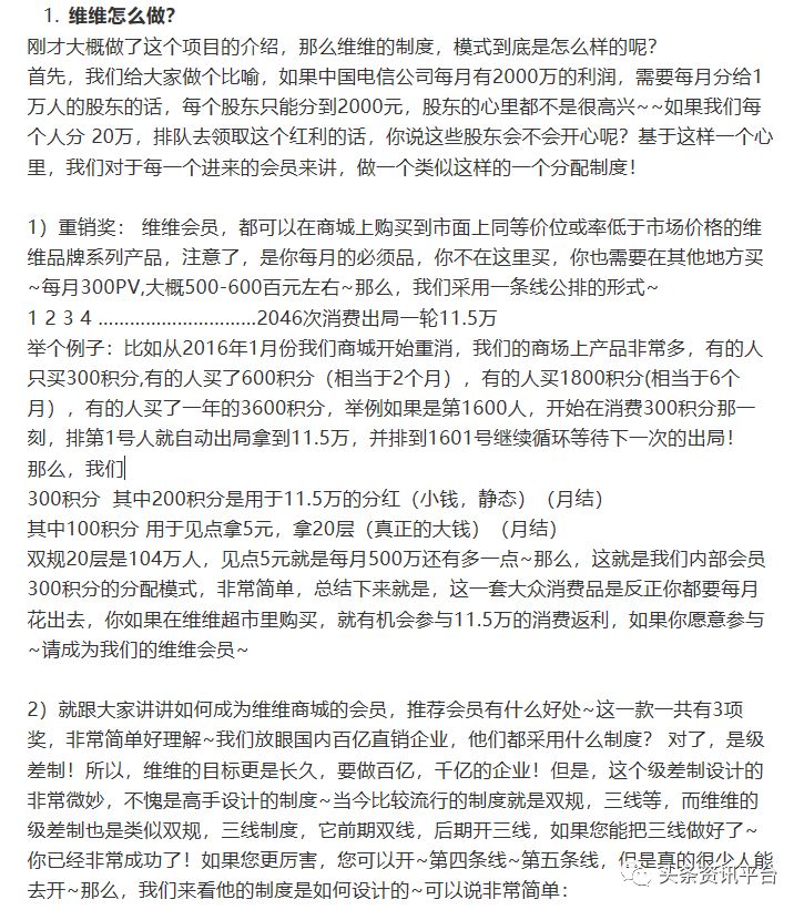 上述内容便是在早前由维维群智所运行的制度,目前其制度又发生了怎样的变化?据维维群智会员小明(化名)透露,“这个制度已基本不用了,新制度还没正式出台。”据了解,维维群智的新制度还在酝酿之中,在这个月还处优化的阶段。