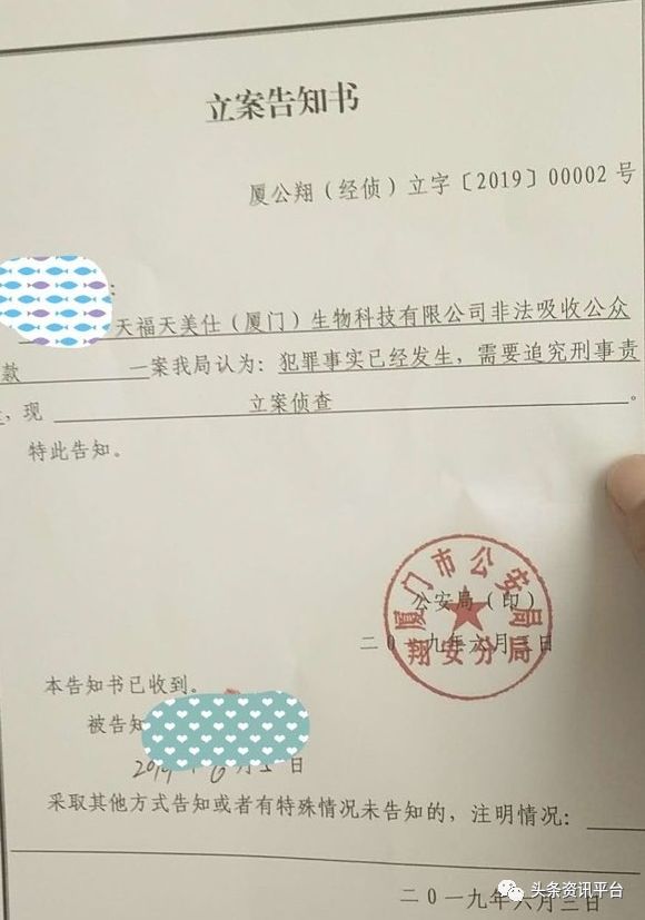 好事不出门,恶事行千里,到了今年6月初,天福天美仕再次出现在大众的视野中竟是有网友曝出“有被中宇乾通和天福天美仕非法吸收公众存款的,赶紧报案,厦门市公安局已经立案侦查了。”