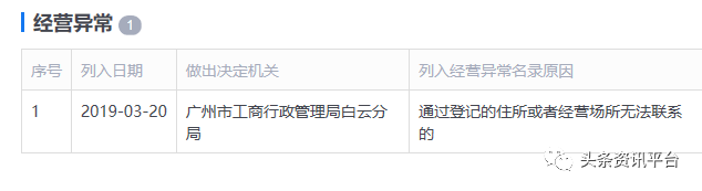 2019年3月20日,广州花肌粹化妆品有限公司因“通过登记的住所或者经营场所无法联系”而被广州市工商行政管理局白云分局列入经营异常名录。