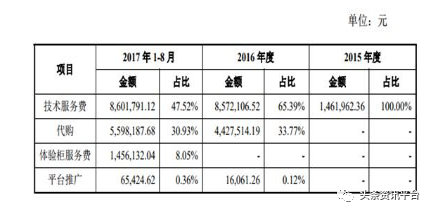 2、代购返利是其主营业务,但加盟费(技术服务费)长期占其营收大头;