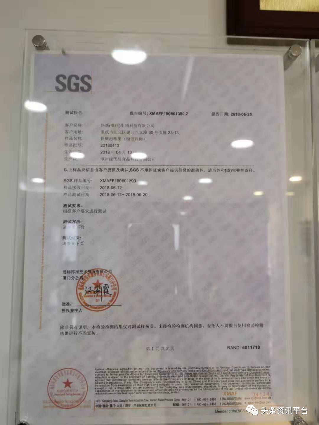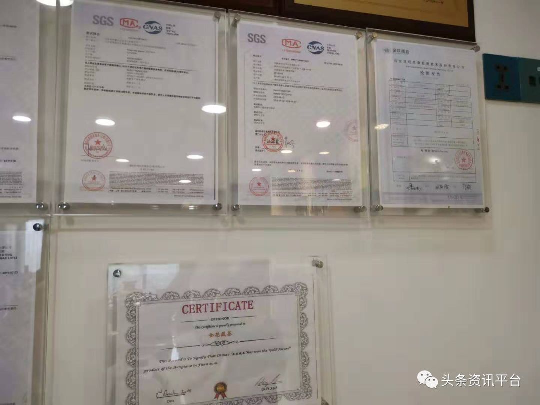 并且,在公司墙上悬挂的食品检测报告中,我们找到了快康素美片、快康滋味果、金花藏茶等产品,并没有发现快康饮产品的检测报告及产品许可证。