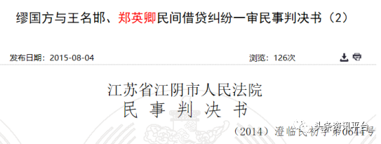 2014年9月,江苏省江阴市人民法院受理了一桩让王名邯、郑英卿沦为官司被告的借贷纠纷案件,据悉,王名邯曾向原告分两次共借款13万元,但原告多次催要,王名邯一直拖欠未还,于是原告将二人告上法庭,法院最终支持了原告的诉讼请求。