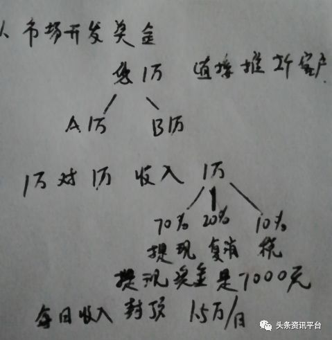 一,市场开发奖,当您成为代理商后,公司会给您两个运营市场,当这两个市场各有一个代理商出现时,这时公司会100%返还本金。投一万返一万,但公司有个硬性规定,70%提现,20%给产品,公司扣除10%的税和爱心基金。