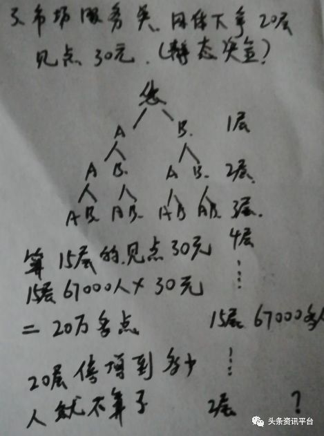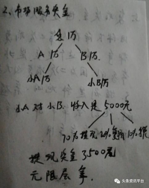 三,市场服务奖,即便您加盟后没有给公司招代理商,但您的上属老师放在您下面所有的加盟商,每上一个人您都有30元的收入,这笔钱给20层。
