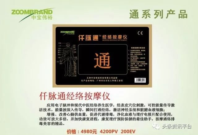 此外,天津中宝还推出了一款运用到了所谓“生物电经络疗法”的DDS经络理疗仪。据宣传,该仪器以电子治疗仪治病保健的理论为基础,结合传统的中医理论,经络学、脏腑学、解剖学、病理学、阴阳五行学等于一体,运用推拿按摩手法而精心总结创立的一种医疗技术。