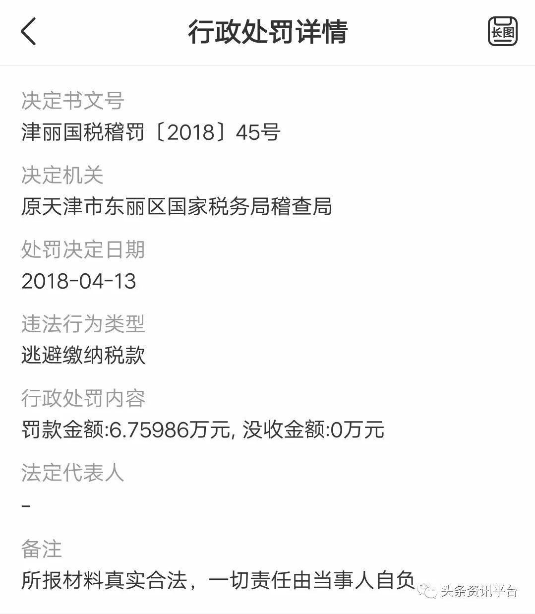 事实上,与天津中宝有关的这些公司都或多或少有一些问题存在。经查,天津中宝伟裕科技有限公司在2018年4月份因为逃避缴纳税款被原天津市东丽区国家税务局稽查局处以6.75986万元的罚款。