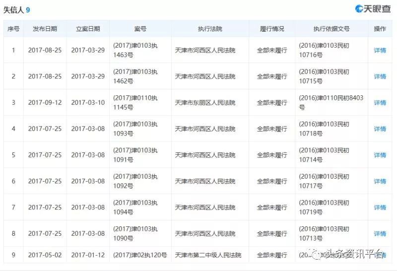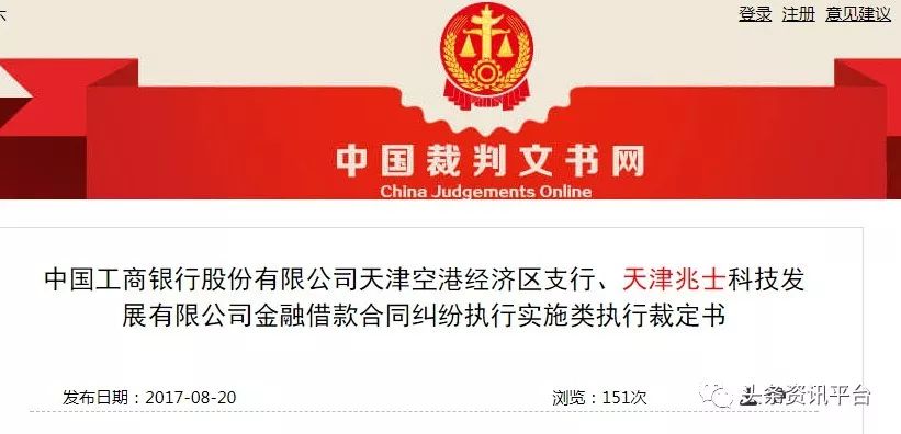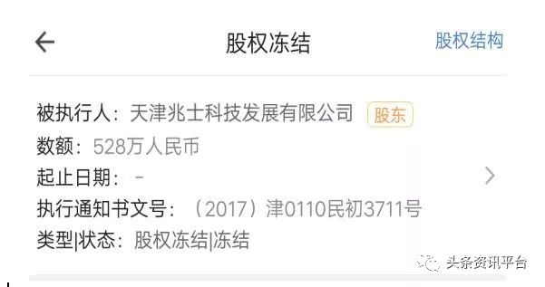 由赵学风担任法定代表人和大股东的天津兆士科技发展有限公司也没能独善其身,在2016年和2017年,公司股权分别被冻结了两次,据悉,该公司失信信息多达14例,终本案件多达13例,限制高消费达到12例。该公司不仅陷入了追偿权纠纷,买卖合同纠纷,民间借贷纠纷,劳动者争议纠纷等多方面的经济纠纷,还被中国工商银行股份有限公司天津空港经济区支行告上了法庭。