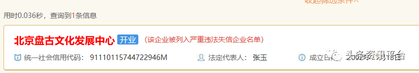 据官网介绍,YouBank亚太区的总代理是北京盘古(文化)集团,但调查发现,这个所谓的集团公司实属子虚乌有,在国家企业信用信息公示系统中,我们查到了一家名称类似的北京盘古文化发展中心,而该企业也已经被列入到了严重违法失信企业名单。