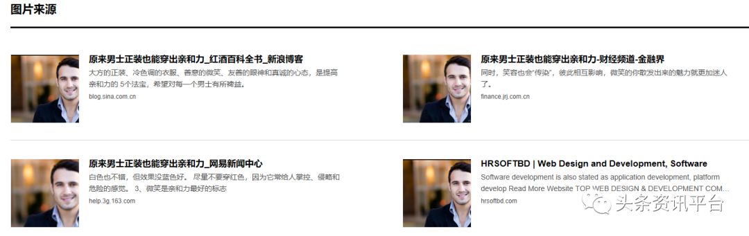 不查不知道,一查吓一跳。关于其所谓后端工程师Mical Crozes的身份,我们通过百度识图进行搜索,发现使用这张图片的网站不止YouBank一家,多伦多的会计师、大卫琼斯保险公司也同样是此人肖像的搜索来源。