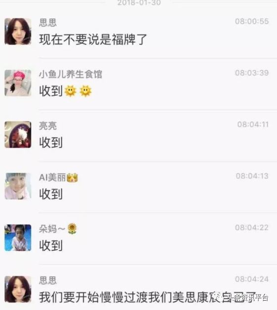于是,在2018年1月30日,思思不得不在微信团队群里通知:“现在不要说是福牌了,我们要慢慢过渡我们美思康宸自己了。”这个时候,恍然大悟的人也越来越多,有代理回想起之前他们一直答应代理去参观厂家,然而,四五年过去了,没有一个人见过厂家,个中缘由,似乎大有云开雾散的势头。