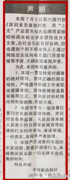 在这篇报道引起社会广泛反响的同时,也遭到了“个别不明身份人士通过网络攻击或向有关部门恶意举报等手段,大肆诋毁该报声誉”。为此,《中国食品报》不得不在今年7月2日发表声明。