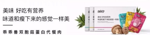 据了解,乖乖兽双孢菇蛋白代餐肉是由中国新零售集团和国人健康集团联袂出品的全球第一款减脂蛋白肉产品,于2019年3月9日正式推出市场。产品号称以浓缩鸡胸肉蛋白质、双孢菇、马铃薯为核心成分,具有高蛋白、低碳水、低脂肪、低热量的特性。以乖乖兽代餐可以有效减少脂肪、碳水的摄入量,达到摄入低于消耗,从而达到减肥的效果。