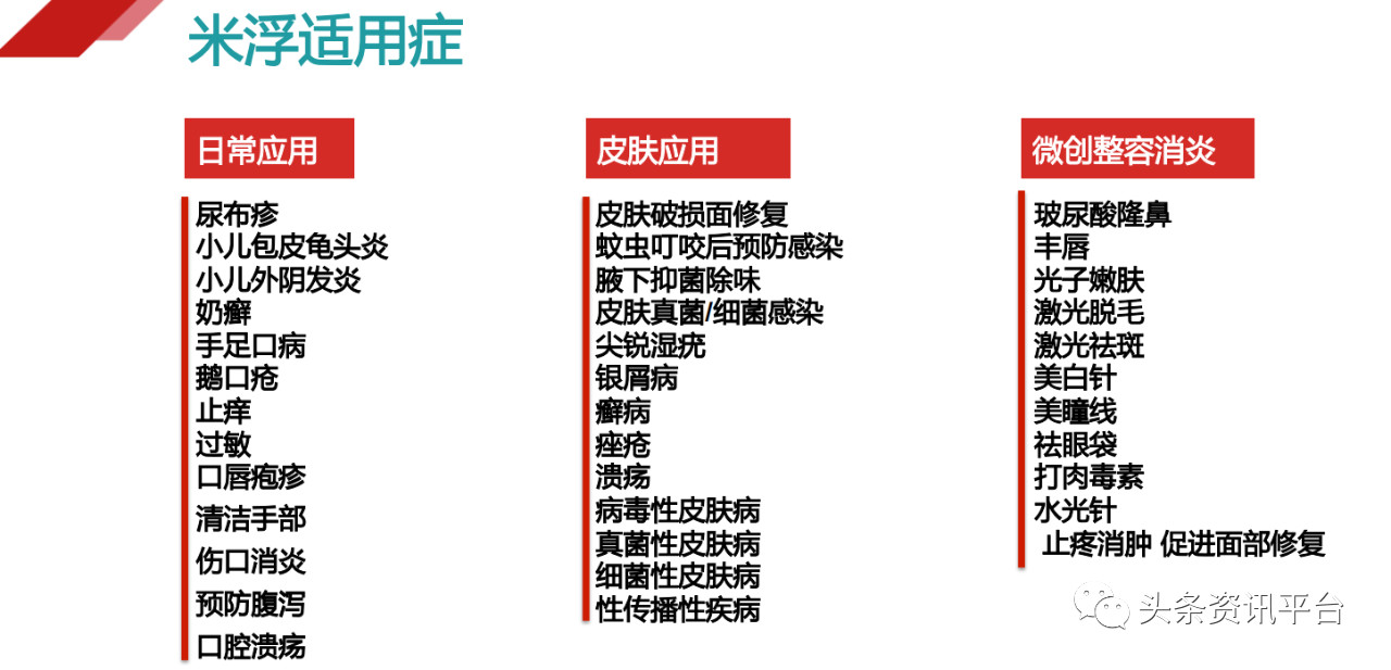 在美浮特旗下具有相同情况的还有“米浮牌泡沫皮肤抗菌液”、“菲嘉牌皮肤抗菌液”、“浮美牌抗菌凝胶”,同样都是第二类消毒产品,同样都在一些印有美浮特字样的PPT里宣传具有治疗各种病症的功效。
