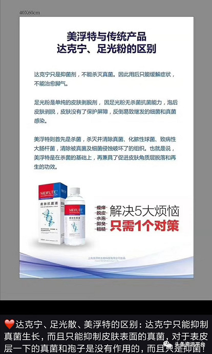 可目前,在网上、在不少人的朋友圈里、在贴吧中,关于美浮特牌皮肤抗菌液的宣传依旧十分夸张。