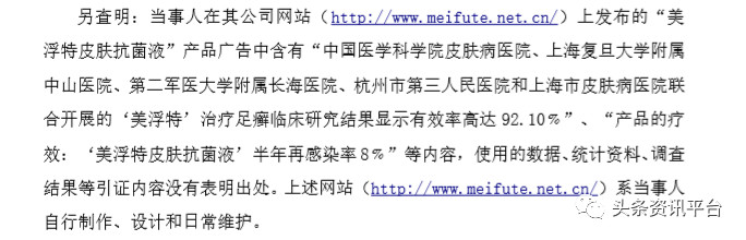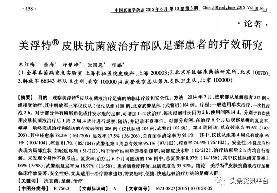 尽管美浮特通过《中国真菌学杂志》发布的广告,被有关部门认定涉嫌违规宣传,但时以至今,在代理中,仍流传着在该杂志上发表的用以佐证美浮特牌皮肤抗菌液医疗功效的文章。