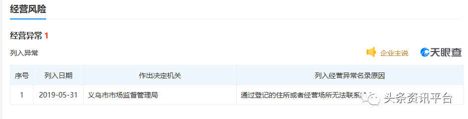 于此同时,另外两家家由三人共同创立的公司——义乌大时代电子商务有限公司和浙江织语科技有限公司,都在2019年5月因为登记的住所或者经营所无法联系的被列入经营异常名录,截至结稿之日,尚未移除。