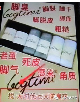在经销商用于宣传的图片上,有大时代七天防臭袜可以治疗脚气、脚裂、死皮等症状的暗示。